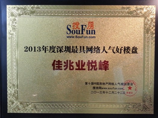 深圳地产公司悦峰项目凭借其优越的交通位置、罕见的超低容积率、高雅的半山园林、极高的户型舒适度、便利的生活配套,得到了主流媒体、房地产行业及客户的高度认可,荣获 2013年度深圳最具网络人气好楼盘。