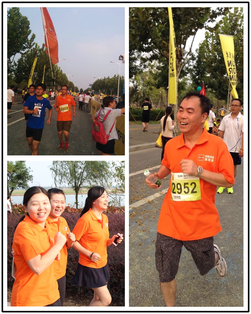 苏南公司本次组织了22名员工参加了比赛,所有员工均以较好的成绩跑完全程,大家在比赛中跑出了快乐,跑出了健康,跑出了团结互助的精神,在长达5.5公里的赛道上挥洒汗水,燃烧青春,美丽的阳澄湖边飞舞着我们的旗帜,鲜艳的橙色激励着我们向着终点奋勇前进。